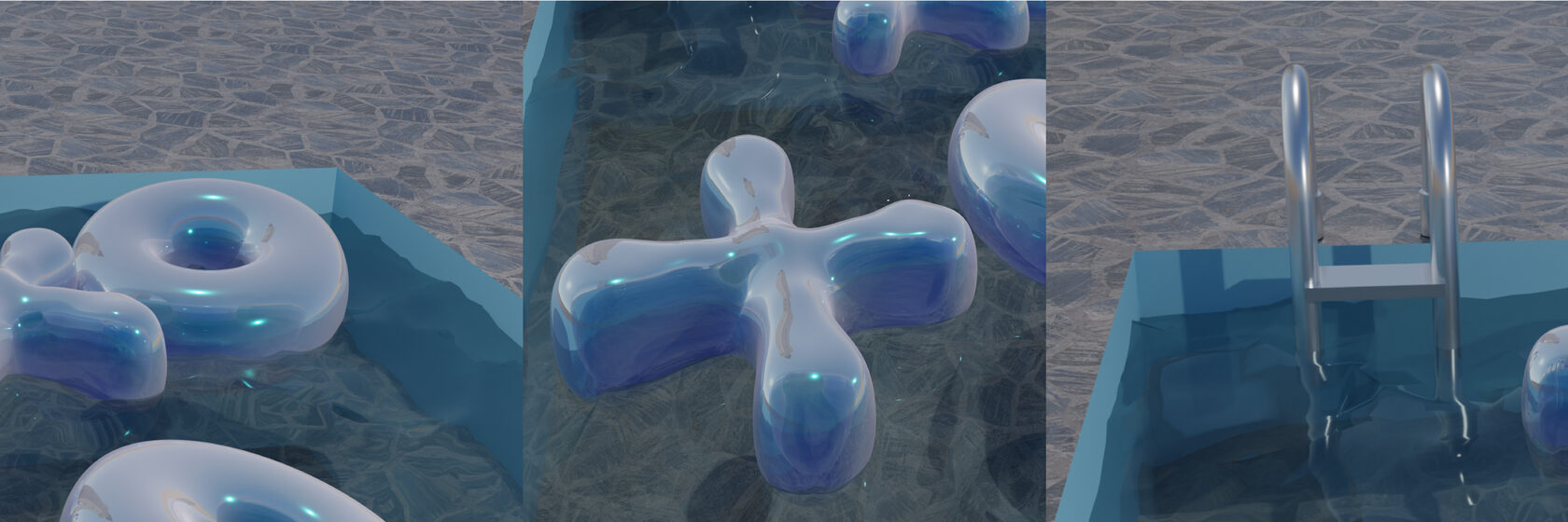 3d model created with blender and cinema 4d. Swim RINGS in the pool. The picture was CREATED in blue tones.